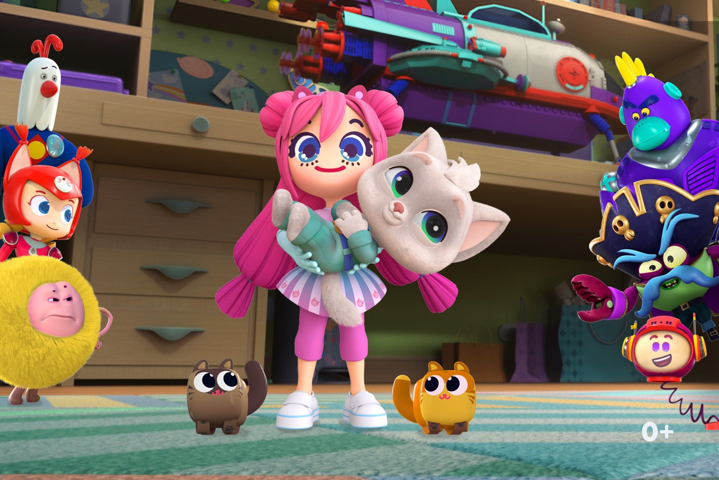 Яркое семейное приключение является продолжением вселенной мультсериала «Геройчики» — истории о мальчике Роме и его команде игрушек. В этот раз Рома планирует выступить на школьном конкурсе и показать собранный из конструктора звездолёт. Игрушка тут же привлекает внимание непрошеных гостей — космических пиратов, которые попытаются угнать звёздный корабль. Пинки, Бублику, Генералу Де Кроллю, Флаю, Глории, Ко-Ко и ящерице-ниндзя О-Раш предстоит сразиться с пришельцами, а ещё проверить дружбу на прочность.